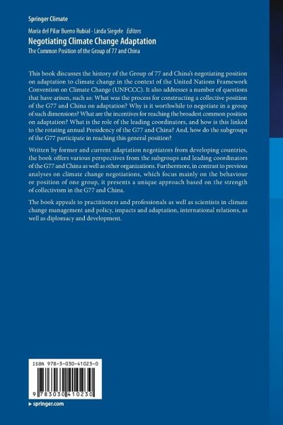 This book discusses the history of the Group of 77 and China's negotiating position on adaptation to climate change in the context of the United Nations Framework Convention on Climate Change (UNFCCC). It also addresses a number of questions that have arisen, such as: What was the process for constructing a collective position of the G77 and China on adaptation? Why is it worthwhile to negotiate in a group of such dimensions? What are the incentives for reaching the broadest common position on adaptation? What is the role of the leading coordinators, and how is this linked to the rotating annual Presidency of the G77 and China? And, how do the subgroups of the G77 participate in reaching this general position?
