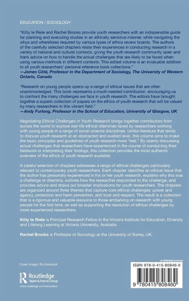 Negotiating Ethical Challenges in Youth Research brings together contributors from across the world to explore real-life ethical dilemmas faced by researchers working with young people in a range of social science disciplines.