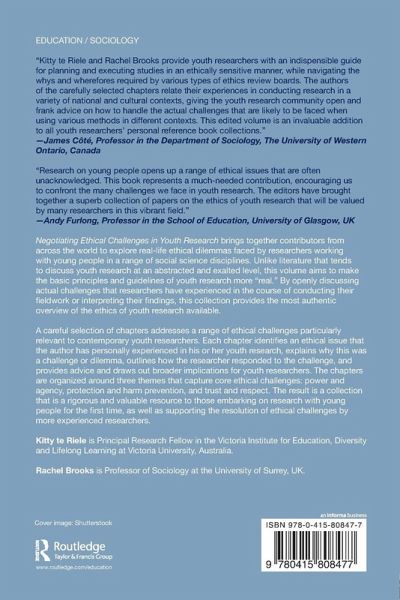 Negotiating Ethical Challenges in Youth Research brings together contributors from across the world to explore real-life ethical dilemmas faced by researchers working with young people in a range of social science disciplines. Unlike literature that tends to discuss youth research at an abstracted and exalted level, this volume aims to make the basic principles and guidelines of youth research more 'real.' By openly discussing actual challenges that researchers have experienced in the course of conducting their fieldwork or interpreting their findings, this collection provides the most authentic overview of the ethics of youth research available. A careful selection of chapters addresses a range of ethical challenges particularly relevant to contemporary youth researchers. Each chapter identifies an ethical issue that the author has personally experienced in his or her youth research, explains why this was a challenge or dilemma, outlines how the researcher responded to the challenge, and provides advice and draws out broader implications for youth researchers. The chapters are organized around three themes that capture core ethical challenges: power and agency, protection and harm prevention, and trust and respect. The result is a collection that is a rigorous and valuable resource to those embarking on research with young people for the first time as well as supporting the resolution of ethical challenges by more experienced researchers.