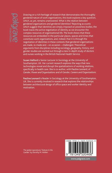 How does gendered organizational life impact on individuals' identities in their everyday working lives? This question is explored with theoretical insights from disciplines including Sociology, Geography, History and Gender Studies interwoven with a major new empirical study of doctors and nurses working in the British National Health Service.