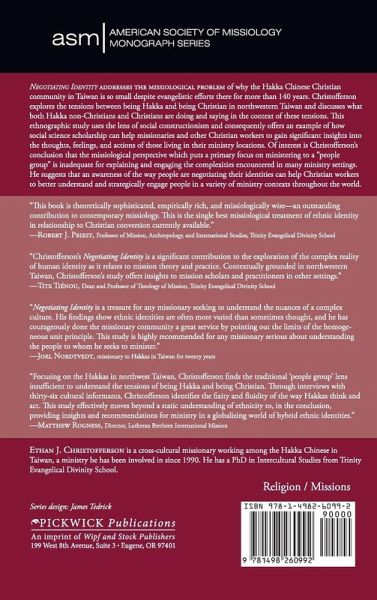 Negotiating Identity addresses the missiological problem of why the Hakka Chinese Christian community in Taiwan is so small despite evangelistic efforts there for more than 140 years. Christofferson explores the tensions between being Hakka and being Christian in northwestern Taiwan and discusses what both Hakka non-Christians and Christians are doing and saying in the context of these tensions. This ethnographic study uses the lens of social constructionism and consequently offers an example of how social science scholarship can help missionaries and other Christian workers to gain significant insights into the thoughts, feelings, and actions of those living in their ministry locations. Of interest is Christofferson's conclusion that the missiological perspective which puts a primary focus on ministering to a "people group" is inadequate for explaining and engaging the complexities encountered in many ministry settings. He suggests that an awareness of the way people are negotiating their identities can help Christian workers to better understand and strategically engage people in a variety of ministry contexts throughout the world.