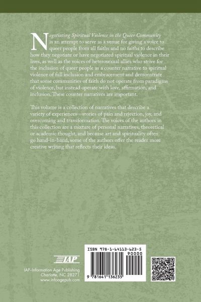This volume is an attempt to serve as a venue for giving a voice to queer people from all faiths and no faiths to describe how they negotiate or have negotiated spiritual violence in their lives, as well as the voices of heterosexual allies who strive for the inclusion of queer people as a counter narrative to spiritual violence of full inclusion and embracement and demonstrate that some communities of faith do not operate from paradigms of violence, but instead operate with love, affirmation, and inclusion. These counter narratives are important. This volume is a collection of narratives that describe a variety of experiences - stories of pain and rejection, joy, and overcoming and transformation. The voices of the authors in this collection are a mixture of personal narratives, theoretical or academic thought, and because art and spirituality often go hand-in-hand, some of the authors offer the reader more creative writing that reflects their ideas.