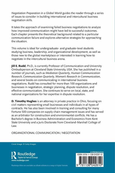 Jill E. Rudd, Ph.D. is currently a Professor of Communication and University Ombudsperson at Cleveland State University, USA. She has published in a number of journals such as, Mediation Quarterly, Human Communication Research, Communication Quarterly, Women's Research in Communication and several previous books on communicating in international business negotiations. Rudd has consulted for more than 100 organizations and businesses in negotiation, strategic planning, dispute resolution and effective communication. She continues to serve on local, state and national organizations for her expertise in dispute resolution. D. Timothy Hughes is an attorney in private practice in Ohio, focusing on civil matters representing small businesses and individuals in all types of contracts. He has also been involved in training and consulting for many Fortune 500 companies on supply chain management issues and has served as an arbitrator for construction and environmental conflicts. He has a Bachelor's degree in Business Administration and Economics from Kent State University and a Juris Doctorate from Cleveland-Marshall College of Law.