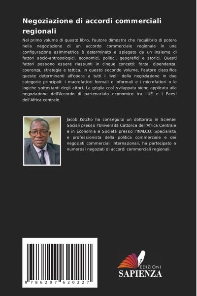 Nel primo volume di questo libro, l'autore dimostra che l'equilibrio di potere nella negoziazione di un accordo commerciale regionale in una configurazione asimmetrica è determinato e spiegato da un insieme di fattori socio-antropologici, economici, politici, geografici e storici. Questi fattori possono essere riassunti in cinque concetti: forza, dipendenza, coerenza, strategia e tattica. In questo secondo volume, l'autore classifica queste determinanti all'opera a tutti i livelli della negoziazione in due categorie principali: i macrofattori formali e informali e i microfattori o le logiche sottostanti degli attori. La griglia così sviluppata viene applicata alla negoziazione dell'Accordo di partenariato economico tra l'UE e i Paesi dell'Africa centrale.