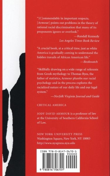 "(C)ommendable in important respects. (Armour) points out problems in the theory of rational racial discrimination that many of its proponents ignore or overlook." "--Randall Kennedy, Los Angeles Times Book Review" "A patient meditation." "--The Nation" "A crucial book, at a critical time, just as white America is gradually coming to understand the hidden travails of African American life." "--Bookwatch" "Skillfully drawing on a wide range of referents from Greek mythology to Thomas Byes, the father of statistics, Armour plumbs our racial psychology and in the process explores the racialized nature of our daily life and our legal system." "--Norfolk Virginia Journal and Guide" Tackling the ugly secret of unconscious racism in American society, this book provides specific solutions to counter this entrenched phenomenon.