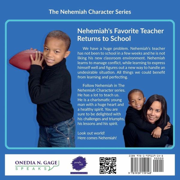 We have a huge problem. Nehemiah's teacher has not been to school in a few weeks and he is not liking his new classroom environment. Nehemiah learns to manage conflict, while learning to express himself well and figures out a new way to handle an undesirable situation. All things we could benefit from learning and perfecting. Follow Nehemiah in The Nehemiah Character series. He has a lot to teach us. He is a charismatic young man with a huge heart and a healthy spirit. You are sure to be delighted with his challenges and triumphs, his lessons and his spirit. Look out world! Here comes Nehemiah!
