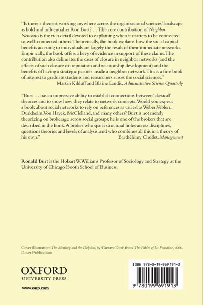 There is a moral to this book, a bit of Confucian wisdom often ignored in social network analysis: "Worry not that no one knows you, seek to be worth knowing." In this book Burt builds on his celebrated work to examine the cases of analysts, bankers, and managers, and find that rewards, in fact, do go to people with well-connected colleagues.