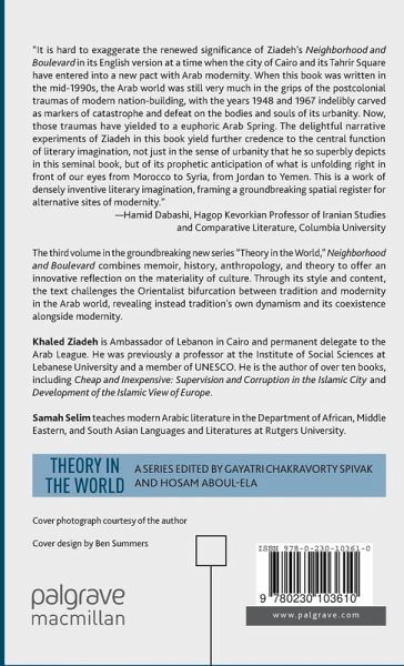"It is hard to exaggerate the renewed significance of Ziadeh's Neighborhood and Boulevard in its English version at a time when the city of Cairo and its Tahrir Square have entered into a renewed pact with Arab modernity. When this book was written in the mid-1990s, the Arab world was still very much in the grips of the postcolonial traumas of modern nation-building, with the years 1948 and 1967 indelibly carved as markers of catastrophe and defeat on the bodies and souls of its urbanity. Now, those traumas have yielded to a euphoric Arab Spring. The delightful narrative experiments of Ziadeh in this book yields further credence to the central function of literary imagination, not just in the sense of urbanity that he so superbly depicts in this seminal book, but of its prophetic anticipation of what is unfolding right in front of our eyes from Morocco to Syria, from Jordan to Yemen. This is a work of densely inventive literary imagination, framing a groundbreaking spatial register for alternative sites of modernity." - Hamid Dabashi, Columbia University