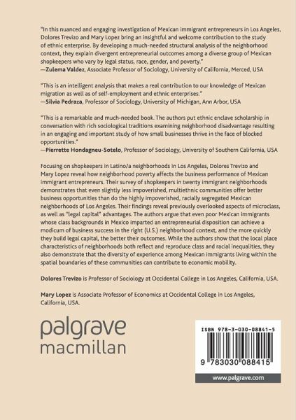 Focusing on shopkeepers in Latino/a neighborhoods in Los Angeles, Dolores Trevizo and Mary Lopez reveal how neighborhood poverty affects the business performance of Mexican immigrant entrepreneurs. Their survey of shopkeepers in twenty immigrant neighborhoods demonstrates that even slightly less impoverished, multiethnic communities offer better business opportunities than do the highly impoverished, racially segregated Mexican neighborhoods of Los Angeles. Their findings reveal previously overlooked aspects of microclass, as well as "legal capital" advantages. The authors argue that even poor Mexican immigrants whose class backgrounds in Mexico imparted an entrepreneurial disposition can achieve a modicum of business success in the right (U.S.) neighborhood context, and the more quickly they build legal capital, the better their outcomes. While the authors show that the local place characteristics of neighborhoods both reflect and reproduce class and racial inequalities, they also demonstrate that the diversity of experience among Mexican immigrants living within the spatial boundaries of these communities can contribute to economic mobility.