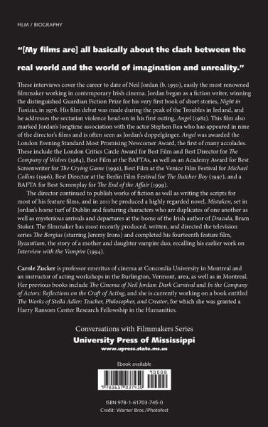 These interviews cover the career to date of Neil Jordan (b. 1950), easily the most renowned filmmaker working in contemporary Irish cinema. Jordan began as a fiction writer, winning the distinguished Guardian Fiction Prize for his very first book of short stories, Night in Tunisia, in 1976. His film debut was made during the peak of the Troubles in Ireland, and he addresses the sectarian violence head-on in his first outing, Angel (1982). This film also marked Jordan's long-time association with the actor Stephen Rea who has appeared in nine of the director's films and is often seen as Jordan's doppelgänger. Angel was awarded the London Evening Standard Most Promising Newcomer Award, the first of many accolades. These include the London Critics Circle Award for Best Film and Best Director for The Company of Wolves (1984), Best Film at the BAFTAs, as well as an Academy Award for Best Screenwriter for The Crying Game (1992), Best Film at the Venice Film Festival for Michael Collins (1996), Best Director at the Berlin Film Festival for The Butcher Boy (1997), and a BAFTA for Best Screenplay for The End of the Affair (1999). The director continued to publish works of fiction as well as writing the scripts for most of his feature films, and in 2011 he produced a highly regarded novel, Mistaken, set in Jordan's home turf of Dublin and featuring characters who are duplicates of one another as well as mysterious arrivals and departures at the home of the Irish author of Dracula, Bram Stoker. The filmmaker has most recently produced, written, and directed the television series The Borgias (starring Jeremy Irons) and completed his fourteenth feature film, Byzantium, the story of a mother and daughter vampire duo, recalling his earlier work on Interview with the Vampire (1994). Carole Zucker, Charlotte, Vermont, is professor of cinema at Concordia University in Montreal and an instructor of acting workshops at the Flynn Center for Education in Burlington, Vermont. Her previous books include The Cinema of Neil Jordan: Dark Carnival and In the Company of Actors: Reflections on the Craft of Acting.