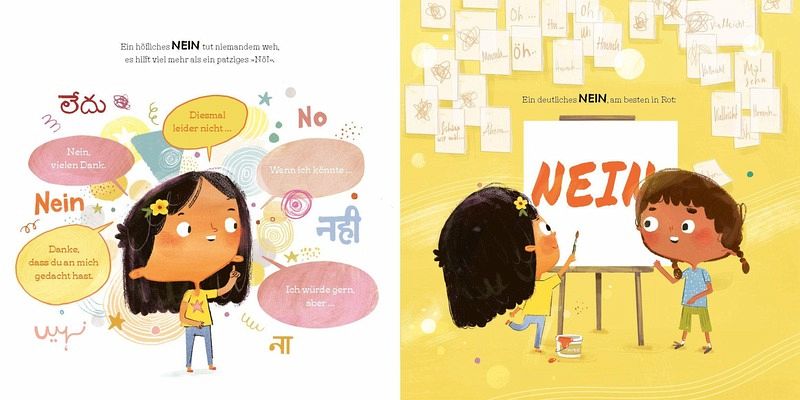 So geht es auch Sina. Sie erlebt eine ganze Reihe Situationen - im Kindergarten, zu Hause und beim Spielen mit Freunden, in denen sie immer mehr über das NEIN-Sagen entdeckt.