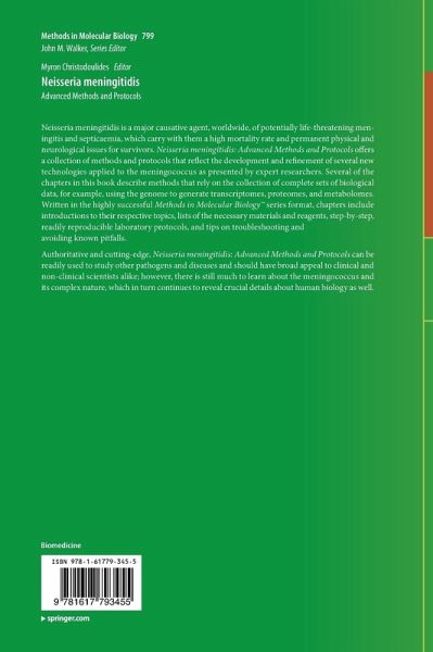 Research into this potentially deadly agent of meningitis and septicaemia is a matter of urgency, and this volume details new methods and technologies that can be deployed to further our understanding of, and ability to tackle, neisseria meningitides.