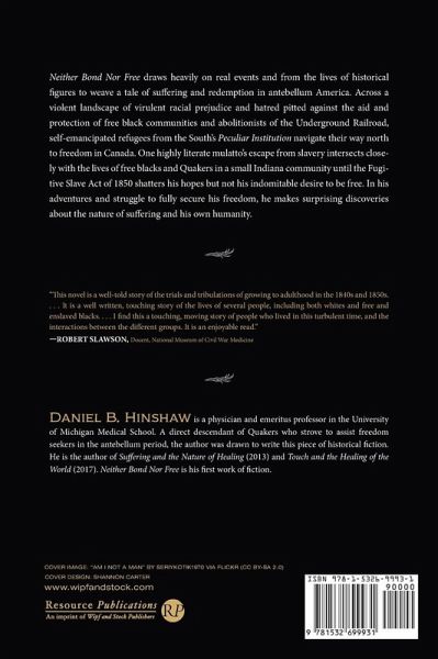 Neither Bond Nor Free draws heavily on real events and from the lives of historical figures to weave a tale of suffering and redemption in antebellum America. Across a violent landscape of virulent racial prejudice and hatred pitted against the aid and protection of free black communities and abolitionists of the Underground Railroad, self-emancipated refugees from the South's Peculiar Institution navigate their way north to freedom in Canada. One highly literate mulatto's escape from slavery intersects closely with the lives of free blacks and Quakers in a small Indiana community until the Fugitive Slave Act of 1850 shatters his hopes but not his indomitable desire to be free. In his adventures and struggle to fully secure his freedom, he makes surprising discoveries about the nature of suffering and his own humanity.