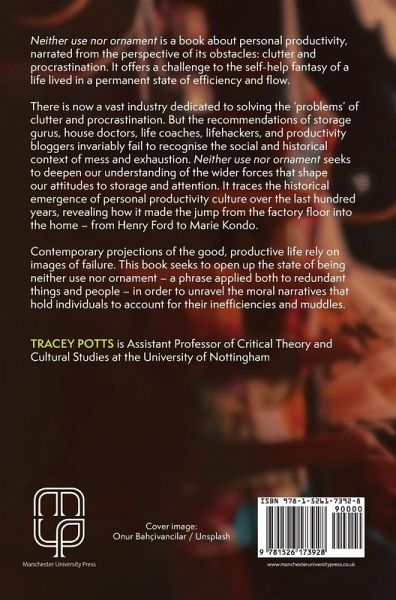 Neither use nor ornament is a book about personal productivity, narrated from the perspective of its obstacles: clutter and procrastination. It offers a challenge to the self-help promise of a clutter-free life and unravels the moral narratives that hold individuals to account for their inefficiencies and muddles. -- .