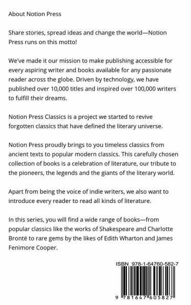 Notion Press proudly brings to you timeless classics from ancient texts to popular modern classics. This carefully chosen collection of books is a celebration of literature, our tribute to the pioneers, the legends and the giants of the literary world. Apart from being the voice of indie writers, we also want to introduce every reader to read all kinds of literature. In this series, you will find a wide range of books-from popular classics like the works of Shakespeare and Charlotte Brontë to rare gems by the likes of Edith Wharton and James Fenimore Cooper.