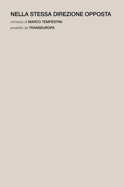 È il 21 di Giugno di un anno imprecisato. Un uomo e una donna bendati si tengono per mano, camminano sopra un prato e contano i loro passi, arrivano a novantanove e si fermano sul limite di un precipizio. Inizia così "Nella stessa direzione opposta". Come gli altri romanzi di Tempestini, e forse ancor di più, è un testo che non rientra in un genere specifico. Non si può considerare un giallo né tanto meno un romanzo d'amore o di formazione, ma questi temi risalgono ogni tanto in superficie velati di mistero. La narrazione è priva di dialoghi e si sviluppa all'interno di due storie che s'intrecciano in un gioco di opposti tra realtà, invenzione e favola, per poi rivelarsi capovolte. I luoghi delle scene narrative non sono quasi mai specificati, fanno eccezione un'isola Greca e Roma, e nemmeno il periodo storico degli eventi è reso chiaro al lettore, seppur reso comprensibile da alcuni riferimenti che ci trascinano in un'epoca ante anni '80. La scrittura scorre con ritmo discontinuo, alcune volte velocemente, altre volte si adagia in una sorta di pacatezza riflessiva e poetica che rimanda a un periodo della vita in cui tutto scorreva più lentamente. Das Urheberrecht an bibliographischen und produktbeschreibenden Daten und an den bereitgestellten Bildern liegt bei Informazioni Editoriali, I.E. S.r.l., oder beim Herausgeber oder demjenigen, der die Genehmigung erteilt hat. Alle Rechte vorbehalten.