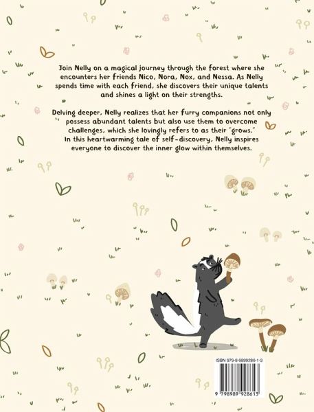 Join Nelly on a magical journey through the forest where she encounters her friends Nico, Nora, Nox, and Nessa. As Nelly spends time with each friend, she discovers their unique talents and shines a light on their strengths. Delving deeper, Nelly realizes that her furry companions not only possess abundant talents but also use them to overcome challenges, which she lovingly refers to as their "grows." In this heartwarming tale of self-discovery, Nelly inspires everyone to discover the inner glow within themselves.