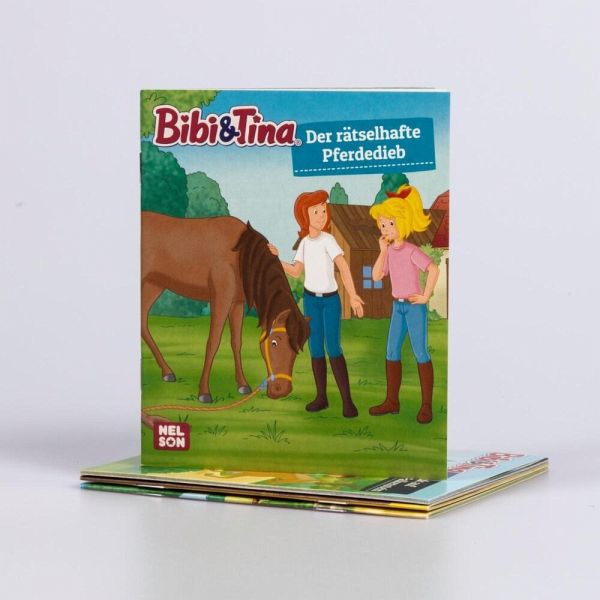 Vier neue Mini-Bücher mit Bibi und Tina - die idealen Begleiter für eine Super-Lesezeit, egal ob zu Hause oder unterwegs: Angst um Fohlen FelixDer rätselhafte PferdediebSpuk auf Schloss FalkensteinPaulchen, das Streichelpony