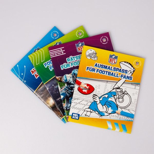 Vier coole Mini-Bücher mit vielen Informationen über die NFL und American Football - ideal für unterwegs! Mini-Buch 1: Alle NFL-Teams auf einen Blick Mini-Buch 2: Football-Wissen für unterwegs Mini-Buch 3: Ausmalspaß für Football-Fans Mini-Buch 4: Rätselspaß für Football-Fans