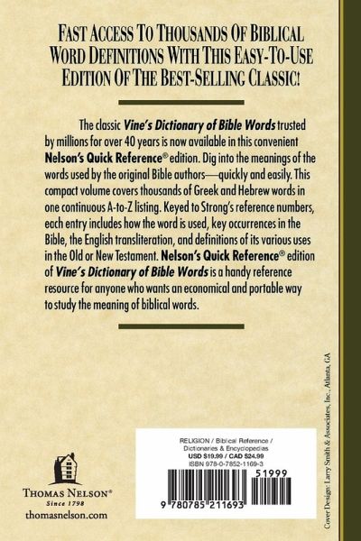 Quickly and easily discover the meanings of words used by the original Bible authors in this compact volume with thousands of Greek and Hebrew words in one continuous A-to-Z listing.