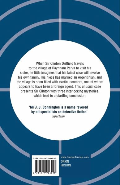 'Mr J. J. Connington is a name revered by all specialists on detective fiction' Spectator When Sir Clinton Driffield travels to the village of Raynham Parva to visit his sister, he little imagines that his latest case will involve his own family. His niece has married an Argentinian, and the village is soon filled with exotic incomers, one of whom appears to have been a foreign agent. This unusual case presents Sir Clinton with three interlocking mysteries, which lead to a startling conclusion.
