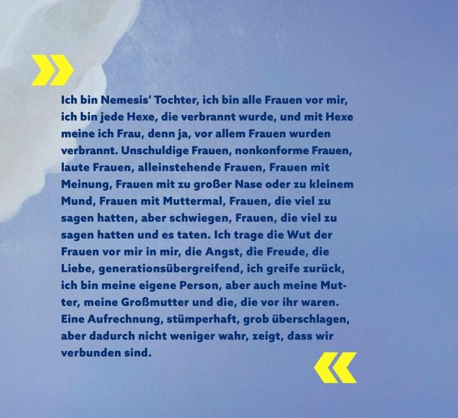 Seit Jahrhunderten werden Frauen unterdrückt. Frauen, die in irgendeiner Weise Stärke ausgestrahlt, sich selbst ermächtigt und zur Wehr gesetzt haben, werden belächelt, verurteilt und dämonisiert. Und all diese Frauen leben in uns weiter - ihre Angst, ihre Freude, ihre Liebe. Und ihre Wut. All diese Mütter, Großmütter und Urgroßmütter. Alle Frauen der Geschichte, die große Opfer auf dem steinigen Weg zur Gleichberechtigung bringen mussten.