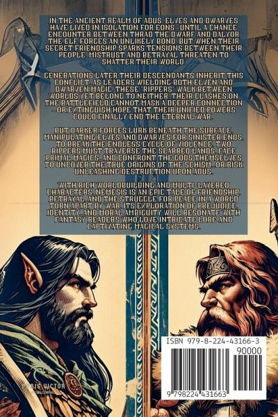 In the mystical realm of Adus, where ancient mountains meet enchanted forests, the unlikely friendship between Thrad, the adventurous dwarf, and Dalyor, the valiant elf warrior, sets in motion a chain of events that will redefine the very fabric of their world. As their races clash and old prejudices resurface, a powerful alliance emerges, only to be tested by the whispers of war that threaten to tear Adus apart. Amidst an era where magic intertwines with cutting-edge technology to reshape the battlefield itself, a new breed of beings known as Warforged - hybrids of elf and dwarf - navigate the chaos with newfound sentience. The Rippers, born from a mix of elven grace and dwarven strength, struggle to find their place in a divided society. Rising from the ashes of conflict are two formidable champions: Elowen, a master of druidic magic and dwarven steel descended from Dalyor, and Grimjaw, heir to Thrad's legacy blending elven finesse with dwarven resilience. Once allies turned adversaries in a war without end, their clash threatens to unravel the very foundations of Adus. When Zara, a courageous new-generation Ripper, uncovers an ancient truth that challenges the cycle of violence, she sets out on a quest to unlock her mixed bloodline's dormant powers. With the land fractured by their final showdown and fate decreeing eternal strife between their peoples, Zara must defy destiny itself to forge a path towards peace. In Adus, where war drums beat incessantly and gods play their games above, hope flickers in unexpected alliances and trust forged across divides. As mortal and divine forces collide in a crucible that will shape the realm's future forevermore, one truth remains steadfast: even amidst chaos and conflict, there lies the potential for salvation and unity.