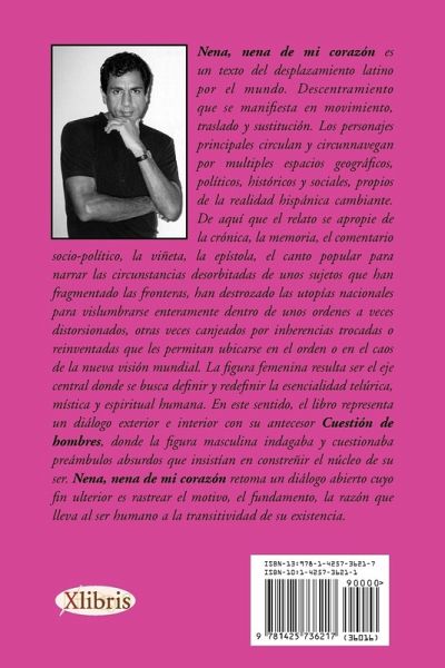 SUMMARY NENA, NENA DE MI CORAZÓN by BENITO PASTORIZA IYODO This section includes a very brief overview of Nena, nena de mi corazón in both Spanish and English. For further information on Benito Pastoriza Iyodo, his biography, publications and prizes, please see the link related to the author page. Nena, nena de mi corazón es un texto del desplazamiento latino por el mundo. Descentramiento que se manifiesta en movimiento, traslado y sustitución. Los personajes principales circulan y circunnavegan por multiples espacios geográficos, políticos, históricos y sociales, propios de la realidad hispánica cambiante. De aquí que el relato se apropie de la crónica, la memoria, el comentario socio-político, la viñeta, la epístola, el canto popular para narrar las circunstancias desorbitadas de unos sujetos que han fragmentado las fronteras, han destrozado las utopías nacionales para vislumbrarse enteramente dentro de unos ordenes a veces distorsionados, otras veces canjeados por inherencias trocadas o reinventadas que les permitan ubicarse en el orden o en el caos de la nueva visión mundial. La figura femenina resulta ser el eje central donde se busca definir y redefinir la esencialidad telúrica, mística y espiritual humana. En este sentido, el libro representa un diálogo exterior e interior con su antecesor Cuestión de hombres, donde la figura masculina indagaba y cuestionaba preámbulos absurdos que insistían en constreñir el núcleo de su ser. Nena, nena de mi corazón retoma un diálogo abierto cuyo fin ulterior es rastrear el motivo, el fundamento, la razón que lleva al ser humano a la transitividad de su existencia. Nena, nena de mi corazón (Beloved, Beloved of My Heart) is an account of Latino displacement throughout the world; decentralization manifested in movement, transference and substitution. The principle characters circulate and circumnavigate within multiple geographic, political, historical and social spheres pertaining to the ever-changing Hispanic reality. For this reason the narrative appropriates the chronicle, the memoir, the socio-political commentary, the vignette, the epistle or the popular song to recount the maddening circumstance of these individuals who have fragmented all boundaries and destroyed national utopias to see themselves completely within frameworks, at times distorted and at others changed by an altered or reinvented fundamental nature, that permit them to be placed within the order or chaos of their new world vision. The feminine figure is the central axis that seeks to define and redefine the earthly, mystic and spiritual human essence. In this sense, the book represents an exterior and interior dialogue with its predecessor Cuestion de hombres (A Matter of Men), where the masculine figure delved into and questioned the absurd preambles that insist on constraining the core of man's being. Nena, nena de mi corazón (Beloved, Beloved of my Heart) takes up an open dialogue with the ultimate goal of encountering the motive, the foundation, the reason that leads human beings to the transitive nature of their existence.