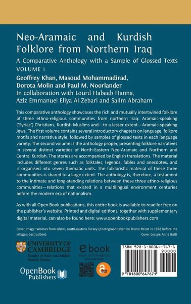 This comparative anthology showcases the rich and mutually intertwined folklore of three ethno-religious communities from northern Iraq: Aramaic-speaking ('Syriac') Christians, Kurdish Muslims and-to a lesser extent-Aramaic-speaking Jews. The first volume contains several introductory chapters on language, folkore motifs and narrative style, followed by samples of glossed texts in each language variety. The second volume is the anthology proper, presenting folklore narratives in several distinct varieties of North-Eastern Neo-Aramaic and Northern and Central Kurdish. The stories are accompanied by English translations. The material includes different genres such as folktales, legends, fables and anecdotes, and is organised into seven thematic units. The folkloristic material of these three communities is shared to a large extent. The anthology is, therefore, a testament to the intimate and long-standing relations between these three ethno-religious communities-relations that existed in a multilingual environment centuries before the modern era of nationalism.
