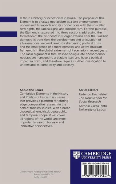 Is there a history of neo-fascism in Brazil? The purpose of this Element is to analyze neo-fascism as a late phenomenon to understand its impacts and its connections with the so-called new rights, the radical right, as well as Bolsonarism. For this purpose, this Element is separated in three sections, addressing the formation of the first neo-fascist organizations after the Brazilian democratic transition; the development and articulation of a transnational network amidst a sharpening political crisis; and the emergence of a more complex and active Brazilian framework in the global extreme-right scenario in recent years. The main argument is that, despite being a late phenomenon, neo-fascism managed to articulate itself and have a political impact in Brazil, therefore eliciting further investigation to understand its complexity and diversity.
