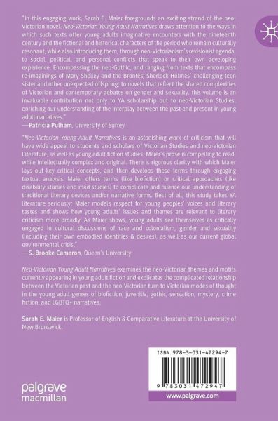 Chapter 1. Neo-Victorian Young Adult Narratives.- Chapter 2. Re/Articulated Monstrosity: Mary and her Creature.- Chapter 3. Mash(ed) Up: Maidens, Monsters, and Mad Scientists.- Chapter 4. Illustrative Genii: The Brontës' Genius.- Chapter 5. The Odd(est) Brontë: Portrait(s) of Emily as a Young Author.- Chapter 6. Irregulars: Sherlockian Youth as Outsiders.- Chapter 7. The Mis(s) Education of Young Women.- Chapter 8. Deviant Young Womanhood: Liminal Queerness, Mad Femininity, and Spectral Subjectivity.- Chapter 9. Things Yet Undone: Encountering the Past through the Present.