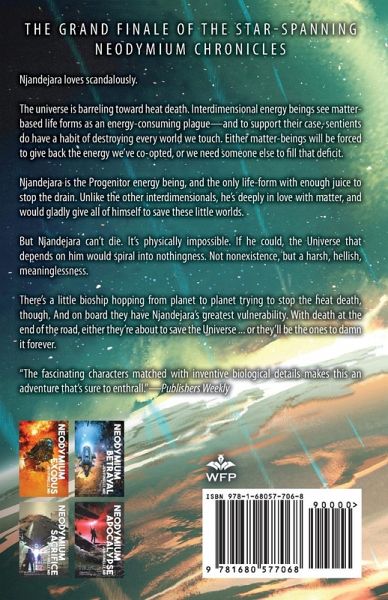 Njandejara loves scandalously. The universe is barreling toward heat death. Interdimensional energy beings see matter-based life forms as an energy-consuming plague-and to support their case, sentients do have a habit of destroying every world we touch. Either matter-beings will be forced to give back the energy we've co-opted, or we need someone else to fill that deficit. Njandejara is the Progenitor energy being, and the only life-form with enough juice to stop the drain. Unlike the other interdimensionals, he's deeply in love with matter, and would gladly give all of himself to save these little worlds. But Njandejara can't die. It's physically impossible. If he could, the Universe that depends on him would spiral into nothingness. Not nonexistence, but a harsh, hellish, meaninglessness. There's a little bioship hopping from planet to planet trying to stop the heat death, though. And on board they have Njandejara's greatest vulnerability. With death at the end of the road, either they're about to save the Universe ... or they'll be the ones to damn it forever.