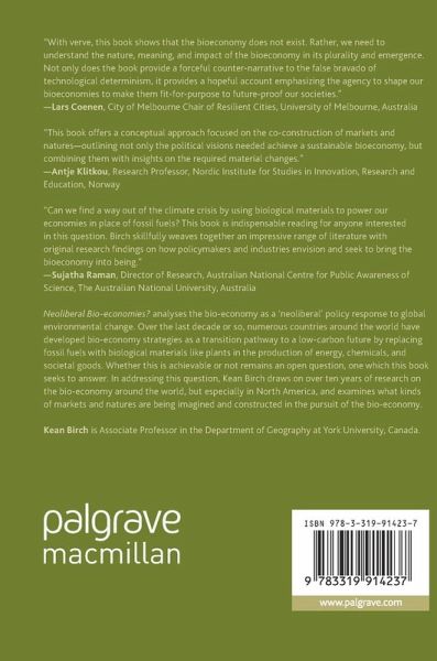 "This study is outstanding for its erudition and summaries of research into both neoliberalism and the bio-economy. ... focal depth Birch offers into the importance of materiality in the co-construction of markets and natures is particularly welcome. ... Birch's study is a salutary compass to find one's way among the meanderings of the bio-economy and to position it in a wider discussion about the relationships between the economy and the environment, as well as indicating stimulating research avenues to explore." (Benjamin Raimbault,Review of Agricultural, Food and Environmental Studies, Vol. 102, 2021)