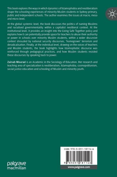 This book explores the ways in which dynamics of Islamophobia and neoliberalism shape the schooling experiences of minority Muslim students in Sydney primary, public and independent schools. The author examines the issues at macro, meso and micro level.