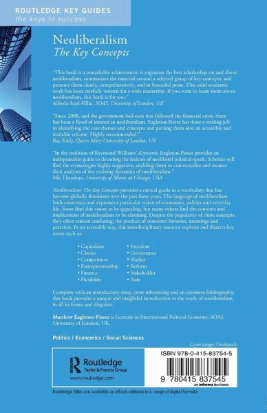 "Since 2008, and the government bail-outs that followed the financial crisis, there has been a flood of interest in neoliberalism. Eagleton-Pierce has done a sterling job in identifying the core themes and concepts and putting them into an accessible and readable volume. Highly recommended." - Ray Kiely, Queen Mary University of London, UK.