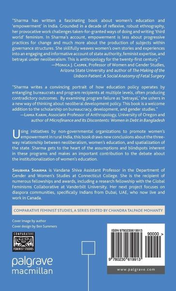 "Sharma has written a fascinating book about women's education and 'empowerment' in India. Grounded in a decade of reflexive, robust ethnography, her provocative work challenges taken-for-granted ways of doing and writing 'third world' feminism. In Sharma's account, empowerment is less about progressive practices for change and much more about the production of subjects within governance structures. She skillfully weaves women's own stories and experiences into an engaging and informative account of state authority, feminist expertise, and betrayal under neoliberalism. This is anthropology for the twenty-first century." - Monica J. Casper, Professor of Women and Gender Studies, Arizona State University and author of The Making of the Unborn Patient: A Social Anatomy of Fetal Surgery