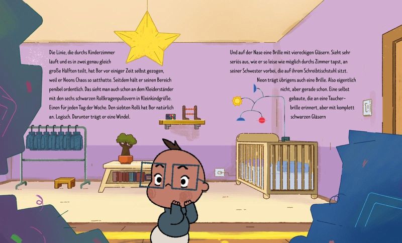 Was Neon & Bor ebenfalls besonders macht, ist der Umgang mit Intelligenz, Kreativität und kindlicher Neugier. Die beiden Geschwister verkörpern auf liebenswerte Weise die Idee, dass man mit Denken, Basteln und ein bisschen Anarchie die Welt gestalten kann. Gleichzeitig zeigen die Geschichten, dass auch schlaue Ideen nicht immer perfekte Lösungen bringen – und dass Scheitern zum Lernen dazugehört. Diese Botschaft vermittelt Kling ganz ohne erhobenen Zeigefinger, sondern mit viel Humor und Herz.