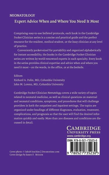 Cambridge Pocket Clinician Neonatology covers a wide variety of topics related to neonatal medicine, as well as clinical questions on maternal and neonatal conditions, symptoms, and procedures that will challenge providers in both the outpatient and inpatient settings. The topics are organized under headings on different diagnoses, evaluation, treatment, complications, and prognoses so that the user will find the desired information quickly and easily. More than 200 diseases and conditions are discussed in detail.