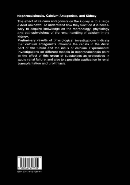 The effect of calcium antagonists on heart muscle and blood circulation is the reason that they have found widespread clinical application for a number of years. Less well known, in contrast, is the effect this group of substances has on the kidneys, both on kidney cells and the blood flow through the kidneys. This effect was the subject of a workshop we organized in Tiibingen in June 1986. Different groups studied the effects of these substances, especially in animals, on the processing of calcium by the kidney cells and on blood flow. A possible explanation is that the calcium antagonists block the influx of calcium through special cell canals, especially the cells of the distal tubule. It is necessary to test whether there is a blockade or only a reduction in the passage of calcium. Our understanding of the effect of calcium antagonists is in large part based on the results of morphologic, physiologic, and pharmacologic studies of calcium in the kidneys. The particular processes involved in nephrocalcinosis are special objects of study with regard to calcium antagonists. This book presents the results of experimental studies of the effect of calcium antagonists on nephrocalcinosis and acute renal failure after ischemia. In this context, the clinician is particularly interested in the use of calcium antagonists to protect against the kidney in urolithiasis, in acute renal failure and during kidney transplantation. The book is thus of interest to urologists and nephrologists as well as pharmacologists. biochemists, physiologists, and others in research.