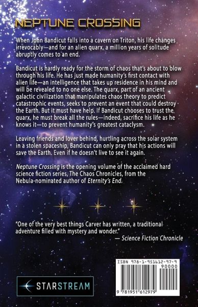 When John Bandicut falls into a cavern on Triton, his life changes irrevocably—and for an alien quarx, a million years of solitude abruptly comes to an end. Bandicut is hardly ready for the storm of chaos that’s about to blow through his life. He has just made humanity’s first contact with alien life—an intelligence that takes up residence in his mind and will be revealed to no one else. The quarx, part of an ancient galactic civilization that manipulates chaos theory to predict catastrophic events, seeks to prevent an event that could destroy the Earth. But it must have help. If Bandicut chooses to trust the quarx, he must break all the rules—indeed, sacrifice his life as he knows it—to prevent humanity’s greatest cataclysm. Leaving friends and lover behind, hurtling across the solar system in a stolen spaceship, Bandicut can only pray that his actions will save the Earth. Even if he doesn’t live to see it again. Neptune Crossing is the opening volume of the acclaimed hard science fiction series, The Chaos Chronicles, from the Nebula-nominated author of Eternity’s End. "Masterfully captures the joy of exploration." —Publishers Weekly "One of the very best things Carver has written, a traditional adventure filled with mystery and wonder and featuring a likable and believable protagonist thrust onto a stage for which he is ill prepared." — Science Fiction Chronicle "Reveals an alien encounter brushing hard against a soul, and takes us from there to the far reaches of the cosmos, all with the sure touch of a writer who knows his science. Jeff Carver has done it again!" —David Brin