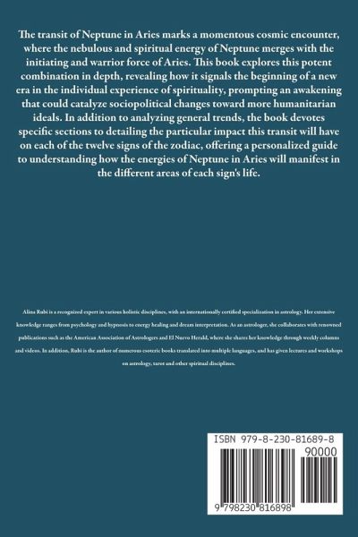 The transit of Neptune in Aries marks a momentous cosmic encounter, where the nebulous and spiritual energy of Neptune merges with the initiating and warrior force of Aries. This book explores this potent combination in depth, revealing how it signals the beginning of a new era in the individual experience of spirituality, prompting an awakening that could catalyze sociopolitical changes toward more humanitarian ideals. In addition to analyzing general trends, the book devotes specific sections to detailing the particular impact this transit will have on each of the twelve signs of the zodiac, offering a personalized guide to understanding how the energies of Neptune in Aries will manifest in the different areas of each sign's life.