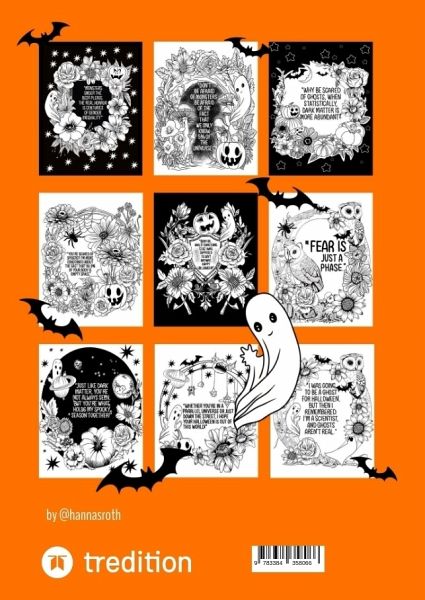 In this coloring book you find 18 hand drawn designs with the topic "Nerdy-Halloween-Greetings" and the same designs with space for you to personalize your Halloween-wishes or curses. Its plenty of space for your creative break.