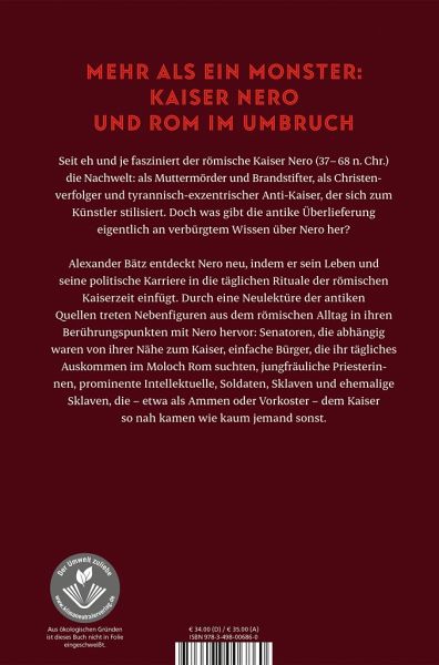 Der römische Kaiser Nero fasziniert die Nachwelt seit eh und je: Er ist der Muttermörder und Brandstifter, der Tyrann und der exzentrische Anti-Kaiser, der sich zum Künstler stilisiert. Alexander Bätz entdeckt Nero neu, indem er sich dessen Leben und politischer Karriere über die Alltagsrituale des römischen Kaiserreichs nähert, die sozialen und politischen Institutionen beschreibt und durch die Neulektüre der Quellen auch Nebenfiguren des römischen Alltags in ihren Berührungspunkten mit Nero hervortreten lässt: Senatoren, die abhängig waren von ihrer Nähe zum Kaiser, einfache Bürger, die als Handwerker und Kaufleute ihr tägliches Auskommen im Moloch Rom suchten, jungfräuliche Priesterinnen, Intellektuelle, Soldaten und ehemalige Sklaven, die als Ammen oder Vorkoster dem Kaiser so nah kamen wie kaum jemand sonst.