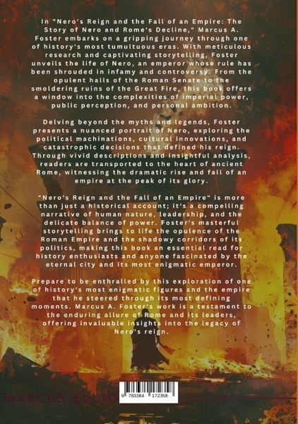 In "Nero's Reign and the Fall of an Empire: The Story of Nero and Rome's Decline," Marcus A. Foster embarks on a gripping journey through one of history's most tumultuous eras. With meticulous research and captivating storytelling, Foster unveils the life of Nero, an emperor whose rule has been shrouded in infamy and controversy. From the opulent halls of the Roman Senate to the smoldering ruins of the Great Fire, this book offers a window into the complexities of imperial power, public perception, and personal ambition.Delving beyond the myths and legends, Foster presents a nuanced portrait of Nero, exploring the political machinations, cultural innovations, and catastrophic decisions that defined his reign. Through vivid descriptions and insightful analysis, readers are transported to the heart of ancient Rome, witnessing the dramatic rise and fall of an empire at the peak of its glory."Nero's Reign and the Fall of an Empire" is more than just a historical account; it's a compelling narrative of human nature, leadership, and the delicate balance of power. Foster's masterful storytelling brings to life the opulence of the Roman Empire and the shadowy corridors of its politics, making this book an essential read for history enthusiasts and anyone fascinated by the eternal city and its most enigmatic emperor.Prepare to be enthralled by this exploration of one of history's most enigmatic figures and the empire that he steered through its most defining moments. Marcus A. Foster's work is a testament to the enduring allure of Rome and its leaders, offering invaluable insights into the legacy of Nero's reign.