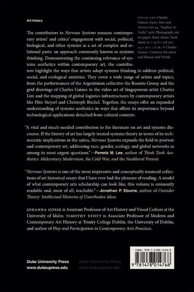 The contributors to Nervous Systems reassess contemporary artists' and critics' engagement with social, political, biological, and other systems as a set of complex and relational parts: an approach commonly known as systems thinking. Demonstrating the continuing relevance of systems aesthetics within contemporary art, the contributors highlight the ways that artists adopt systems thinking to address political, social, and ecological anxieties. They cover a wide range of artists and topics, from the performances of the Argentinian collective the Rosario Group and the grid drawings of Charles Gaines to the video art of Singaporean artist Charles Lim and the mapping of global logistics infrastructures by contemporary artists like Hito Steyerl and Christoph Büchel. Together, the essays offer an expanded understanding of systems aesthetics in ways that affirm its importance beyond technological applications detached from cultural contexts. Contributors. Cristina Albu, Amanda Boetzkes, Brianne Cohen, Kris Cohen, Jaimey Hamilton Faris, Christine Filippone, Johanna Gosse, Francis Halsall, Judith Rodenbeck, Dawna Schuld, Luke Skrebowski, Timothy Stott, John Tyson