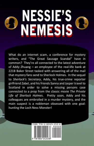 What do an Internet scam, a conference for mystery writers, and "The Great Sausage Scandal" have in common? They're all connected to the latest adventure of Addy Zhuang- an employee of the real-life bank at 221B Baker Street tasked with answering all of the mail that mystery fans send to Sherlock Holmes. In the sequel to Sherlock's Secretary, Addy, his true-crime reporter girlfriend Zabel, and his friends Sanna and Jasper travel to Scotland in order to solve a missing persons case connected to a prop from the classic movie The Private Life of Sherlock Holmes. Pretty soon, Addy and his colleagues are embroiled in a murder mystery, and the main suspect is a nobleman obsessed with one goal: hunting the Loch Ness Monster!