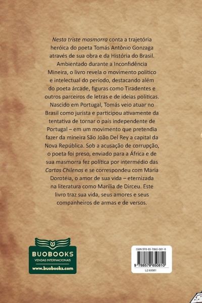 Nesta triste masmorra conta a trajetória heróica do poeta Tomás Antônio Gonzaga através de sua obra e da História do Brasil. Ambientado durante a Inconfidência Mineira, o livro revela o movimento político e intelectual do período, destacando além do poeta árcade, figuras como Tiradentes e outros parceiros de letras e de ideias políticas. Nascido em Portugal, Tomás veio atuar no Brasil como jurista e participou ativamente da tentativa de tornar o país independente de Portugal ¿ em um movimento que pretendia fazer da mineira São João Del Rey a capital da Nova República. Sob a acusação de corrupção, o poeta foi preso, enviado para a África e de sua masmorra fez política por intermédio das Cartas Chilenas e se correspondeu com Maria Dorotéia, o amor de sua vida ¿ eternizada na literatura como Marília de Dirceu. Este livro traz sua vida, seus amores e seus companheiros de armas e de versos.
