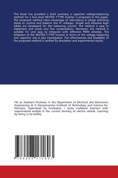This book has provided a brief summary a capacitor voltage-balancing method for a four-level NESTED T-TYPE inverter is proposed in this paper. The proposed method takes advantage of redundancy in phase switching states to control and balance the FC voltages. Simple and effective logic tables are developed for the balancing control. The method is easy to implement and needs very few computations. Moreover, the method is suitable for and easy to integrate with different PWM schemes. The limitation of the NESTED T-TYPE inverter in terms of the voltage balancing and capacitor size is also investigated. The effectiveness and feasibility of the proposed method is verified by simulation and experimental results.