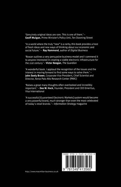 This book explores the possible creation and impact of electronic markets underpinned by government. How far could electronic trade go? The author outlines a world in which open online marketplaces are routinely used to trade everything from office space to bicycle rental between individuals. Each transaction would be guaranteed by the system, not the reputation of the seller. Anyone could enter the market as an equal. The author argues that the electronic marketplaces of the future will have widespread and fundamental economic and social consequences. For more information about Guaranteed Electronic Markets visit the Gems Website at www.gems.org.uk