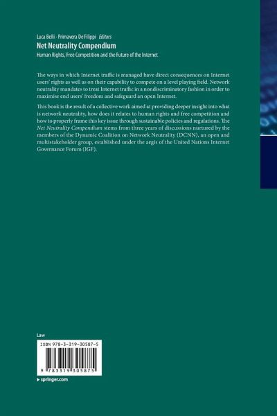 This book is the result of a collective work aimed at providing deeper insight into what is network neutrality, how does it relates to human rights and free competition and how to properly frame this key issue through sustainable policies and regulations. The Net Neutrality Compendium stems from three years of discussions nurtured by the members of the Dynamic Coalition on Network Neutrality (DCNN), an open and multi-stakeholder group, established under the aegis of the United Nations Internet Governance Forum (IGF).